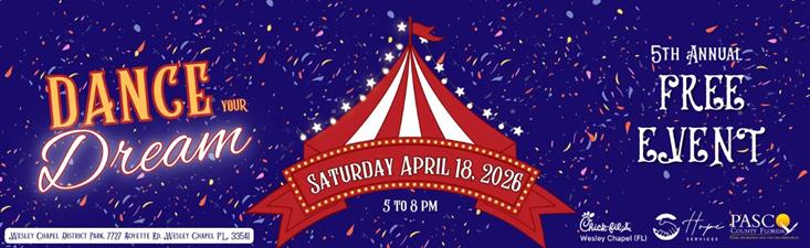 Join us for Dance Your Dream at Wesley Chapel District Park (7727 Boyette Rd., Wesley Chapel, FL) on Saturday, April 18, 2026 from 5:00 pm – 8:00 pm. This annual, FREE prom-style dance celebrates individuals 14 years and older living with disabilities, offering a night of music, dancing, and community support in a welcoming, inclusive atmosphere. Registration is required—don’t miss this magical evening where dreams take the spotlight! Register here.